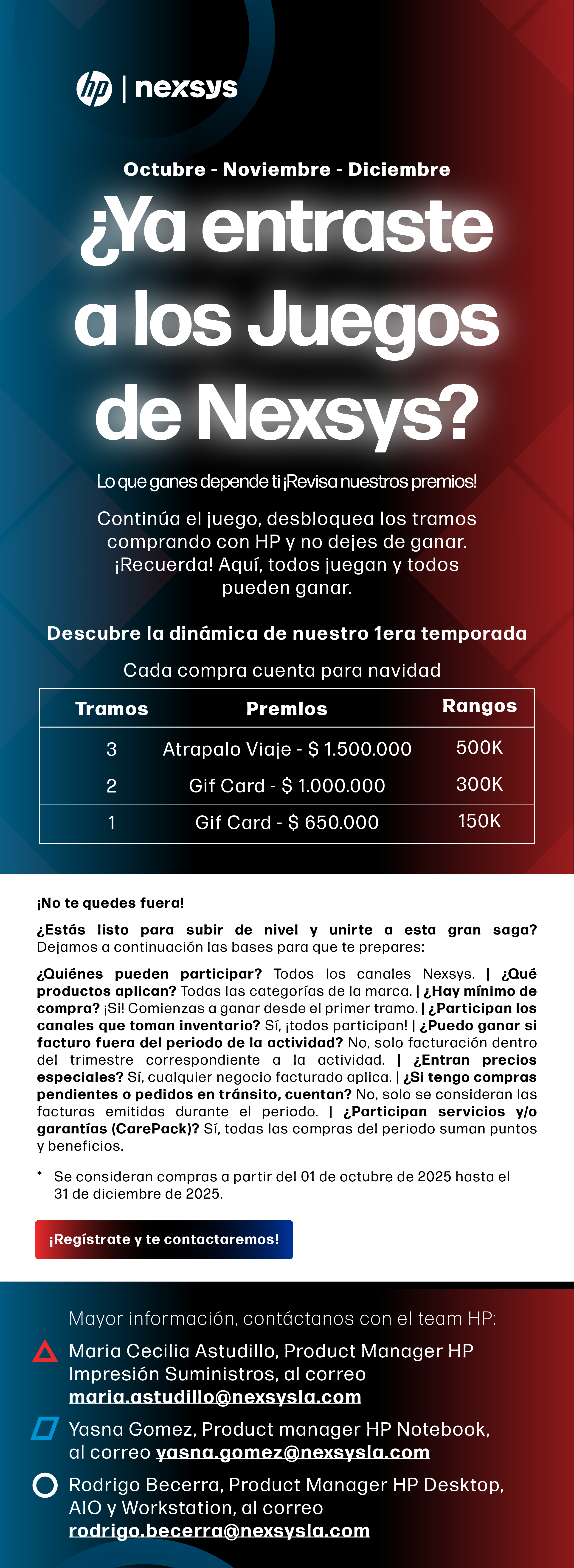 | Nexsys tiene un especial cuidado en el tratamiento de los datos. Todo el personal con acceso a datos de carácter personal ha recibido la formación necesaria para mantener la total confidencialidad e integridad de los datos de acuerdo a la ley de protección de datos. Conozca nuestra política de privacidad. Todos los derechos reservados Nexsys El Primer Mayorista de Soluciones de Latinoamérica www.nexsysla.com/ |