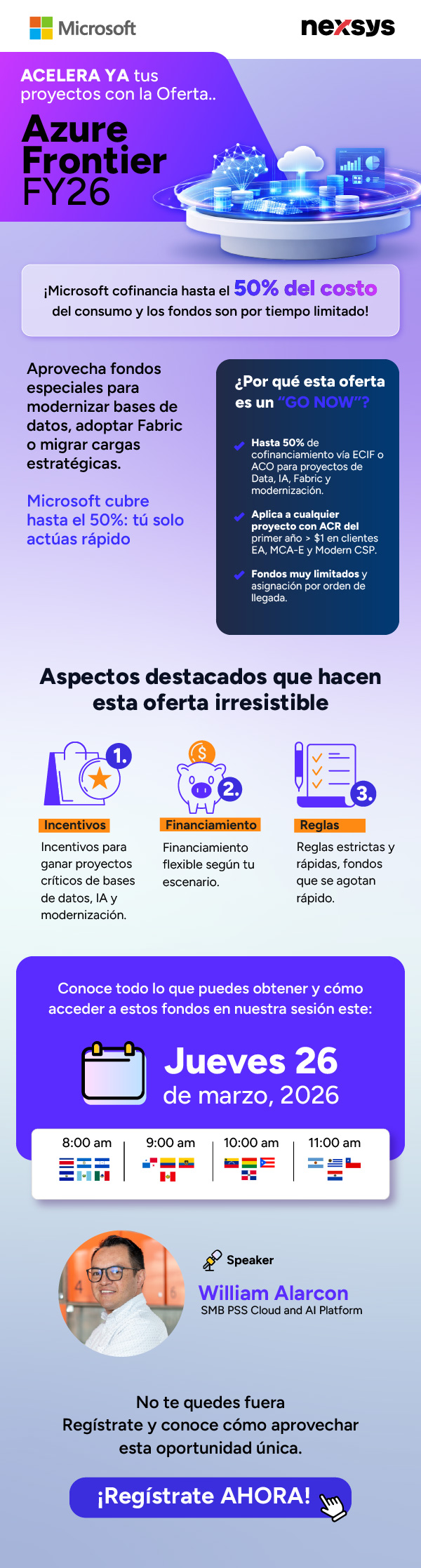 Favor no responder a este correo ya que es un sistema automatizado de envío de email por lo tanto no existe. Nexsys tiene un especial cuidado en el tratamiento de los datos. Todo el personal con acceso a datos de carácter personal ha recibido la formación necesaria para mantener la total confidencialidad e integridad de los datos de acuerdo a la ley de protección de datos. Conozca nuestra política de privacidad. Todos los derechos reservados Nexsys El Primer Mayorista de Soluciones de Latinoamérica www.nexsysla.com/